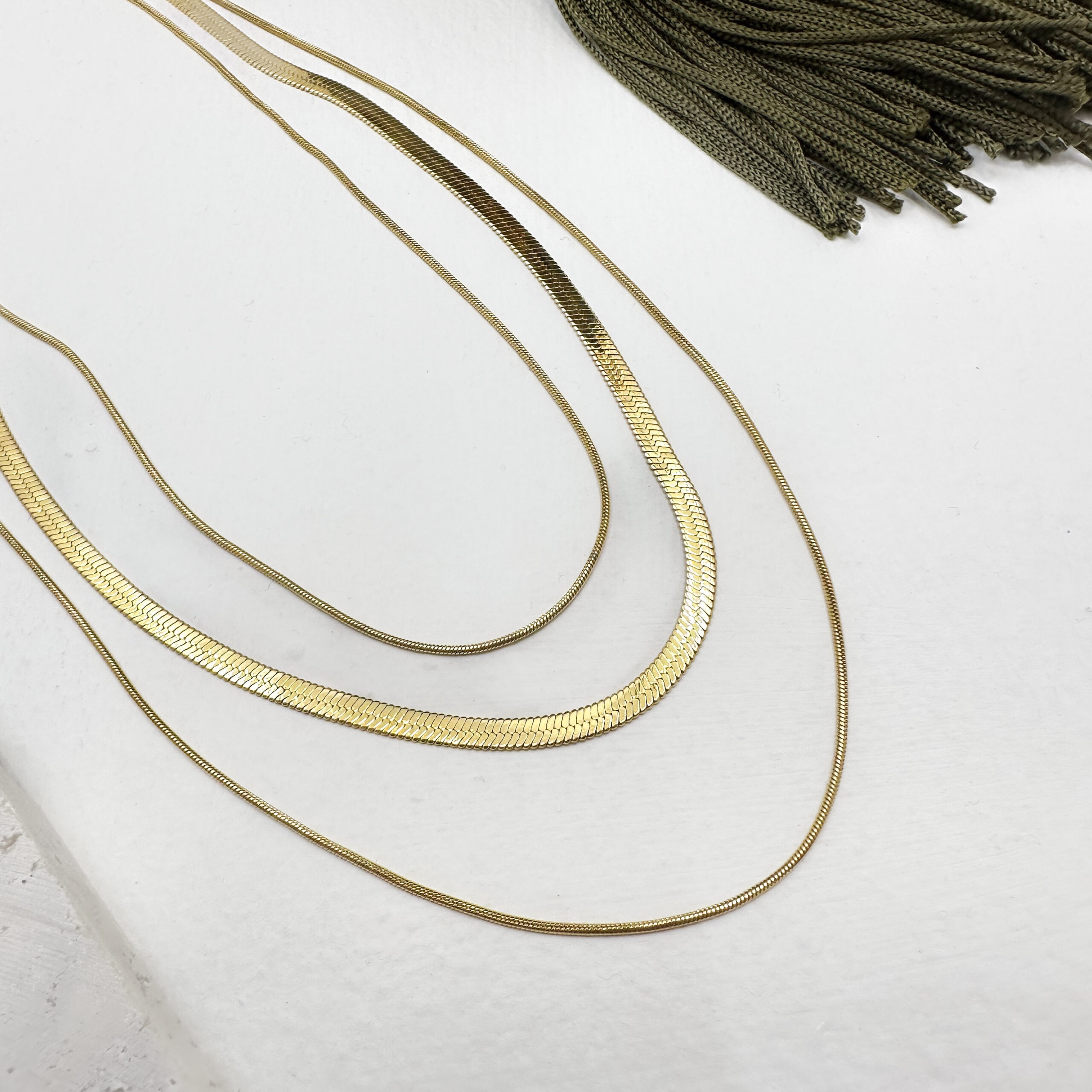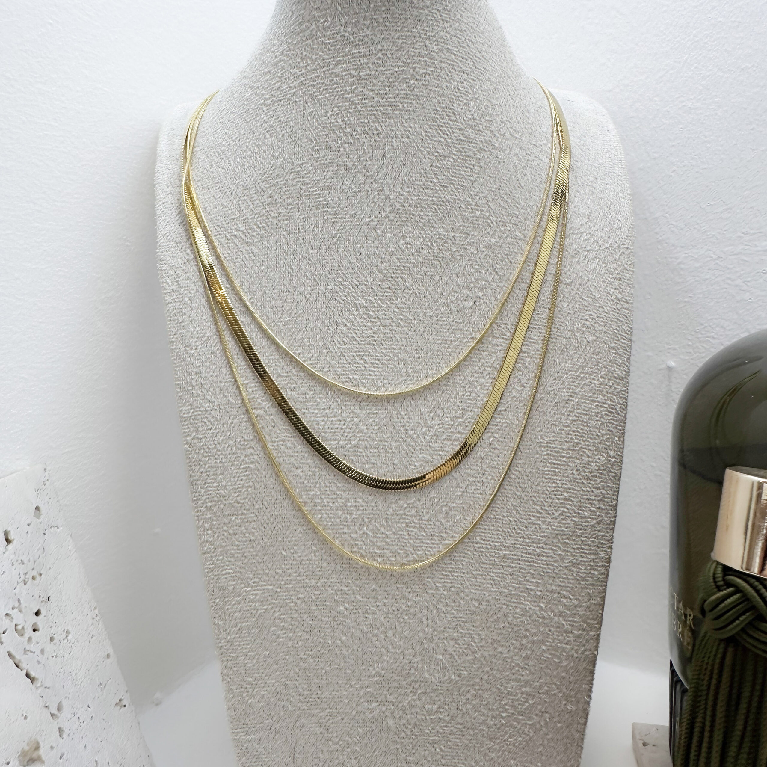 Tripla soros nyaklánc, ami egy kapocsban ér össze, így nem fog összegabalyodni. Tökéletes alapdarab a mindennapokra!