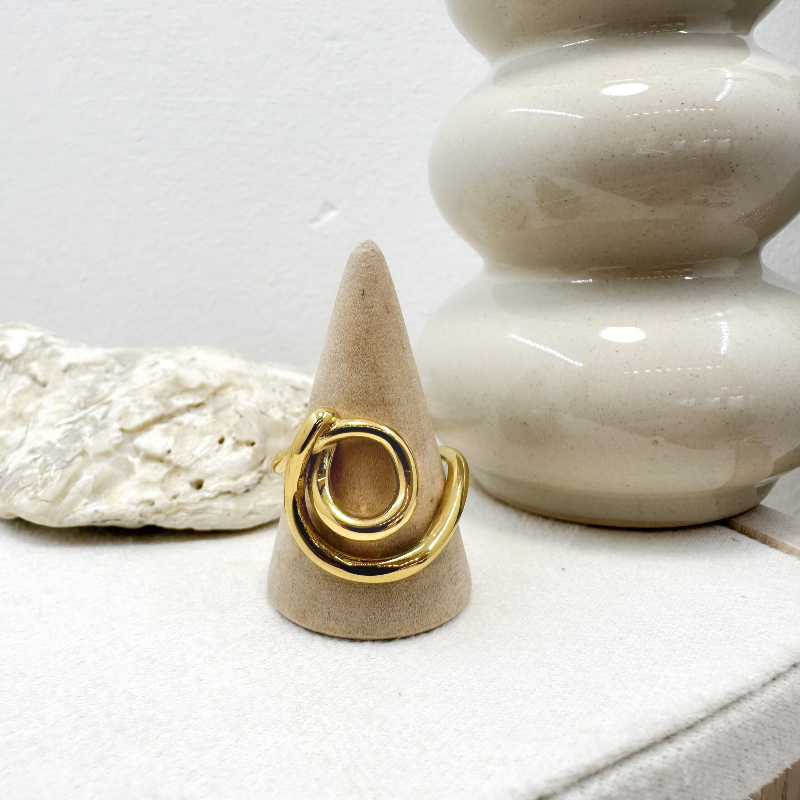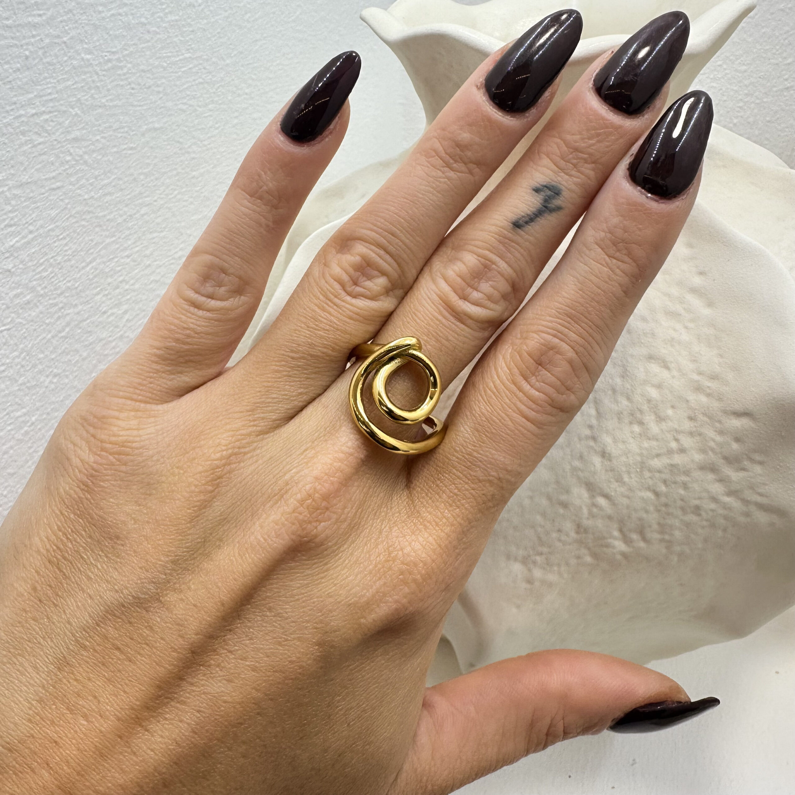 18 karátos arannyal bevont rozsdamentes acél. Vízálló, de kérjük, hogy kezeld odafigyeléssel és edzéshez, szaunázáshoz inkább vedd le, és sokáig veled marad!
