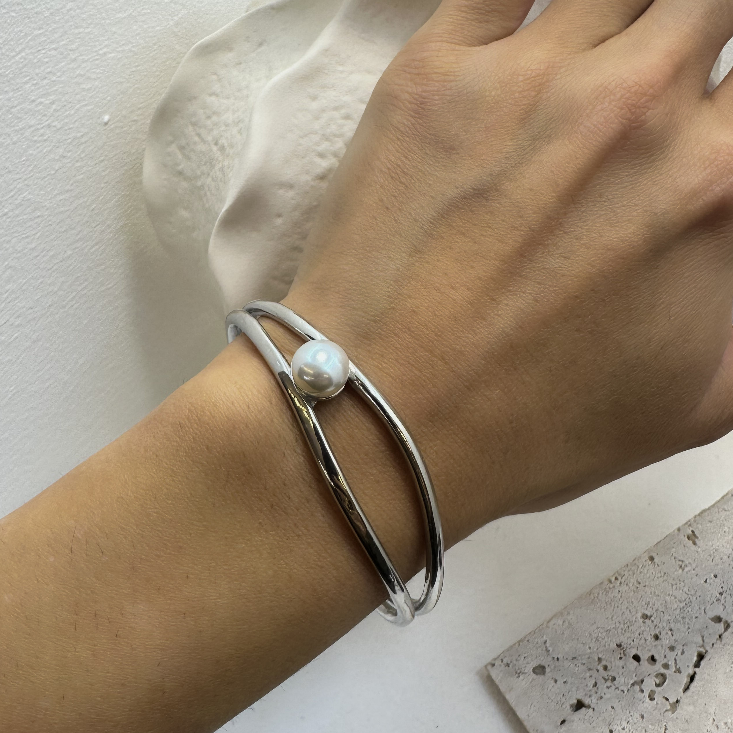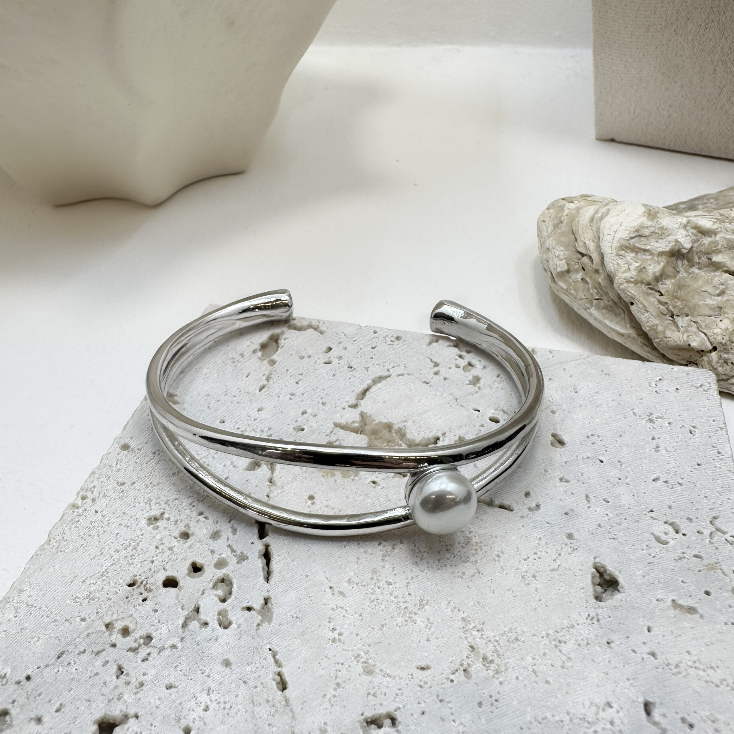 Egy nagyobb gyönggyel díszített karkötő, ami könnyen állítható, arany színben is elérhető!