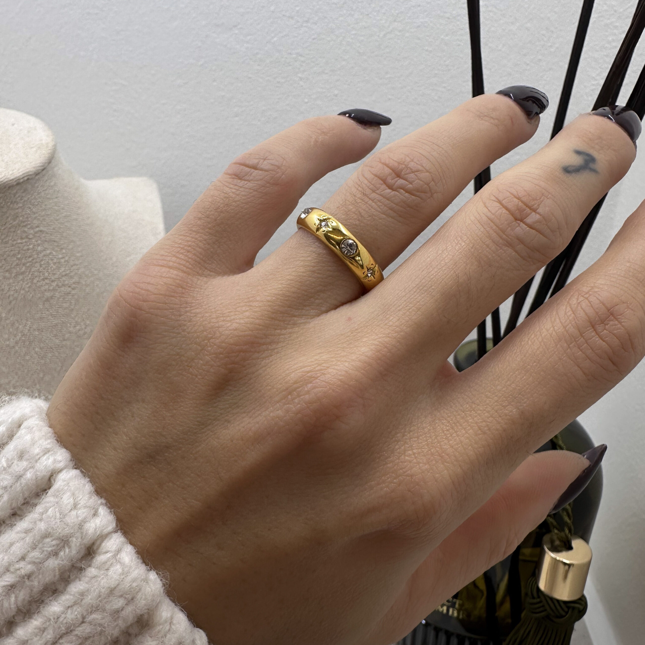 Csodaszép, apró cirkónia kövekkel díszített karikagyűrű, 3 méretben.