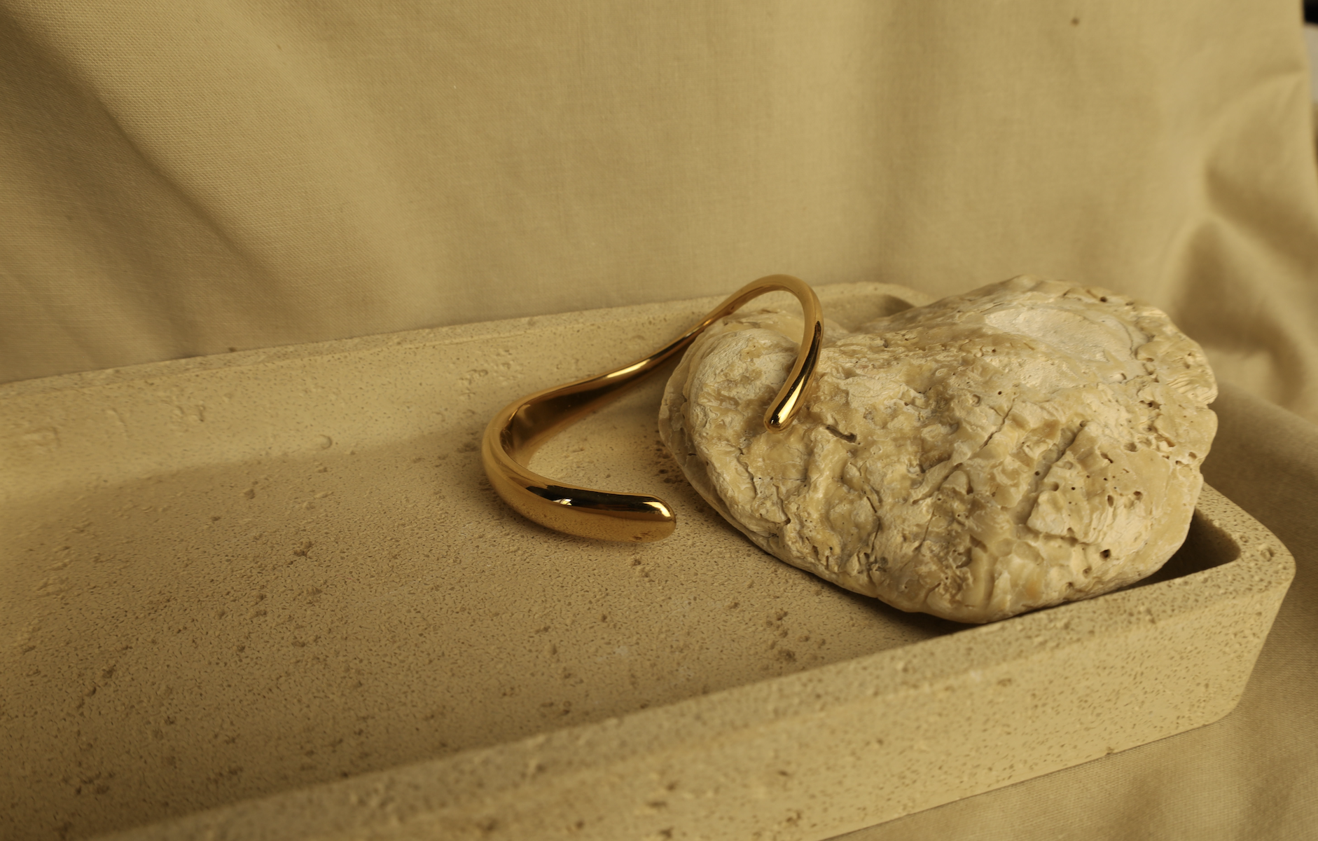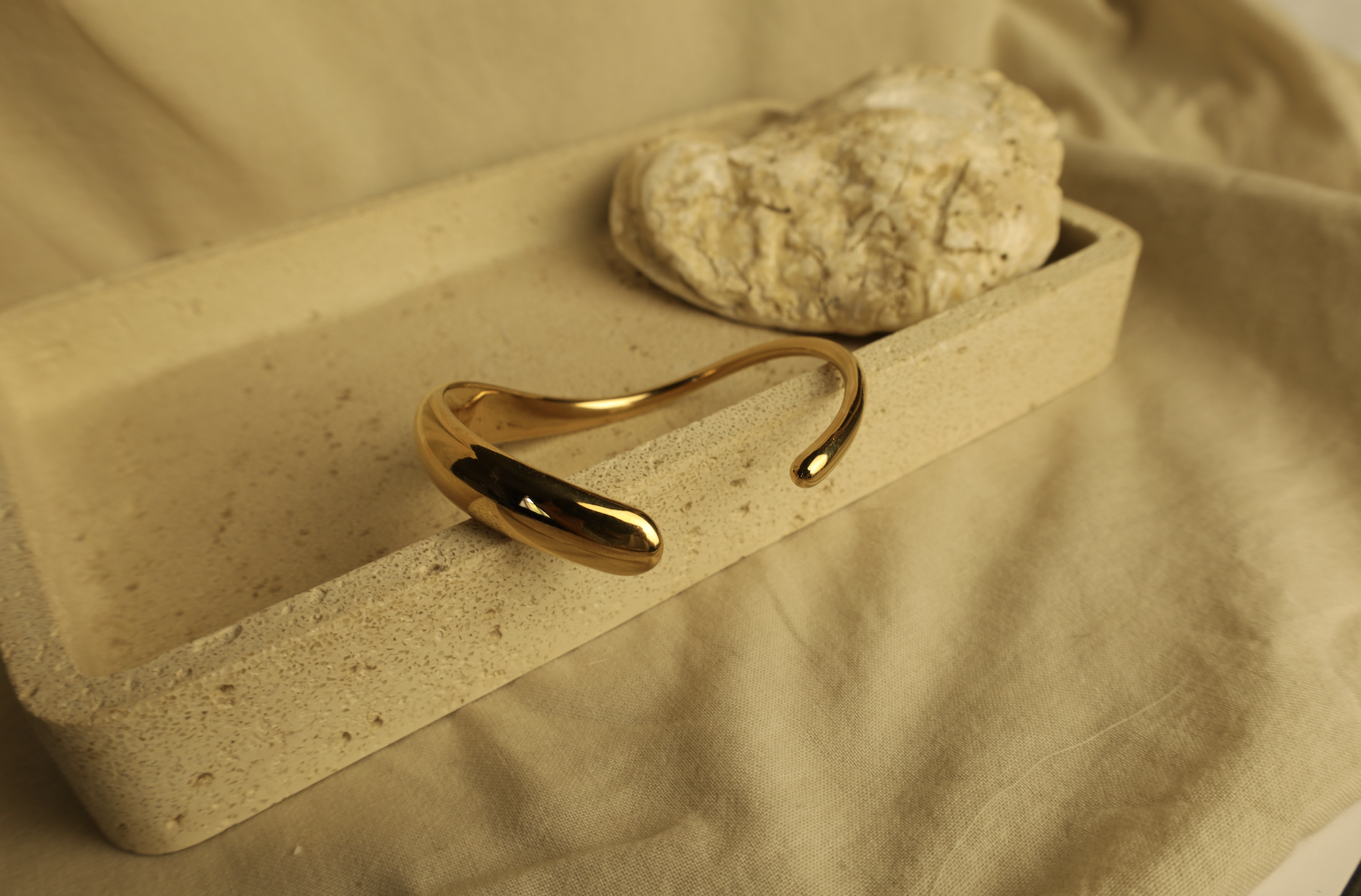 18 karátos arannyal bevont rozsdamentes acél. Vízálló, de kérjük, hogy kezeld odafigyeléssel és edzéshez, szaunázáshoz inkább vedd le, és sokáig veled marad!