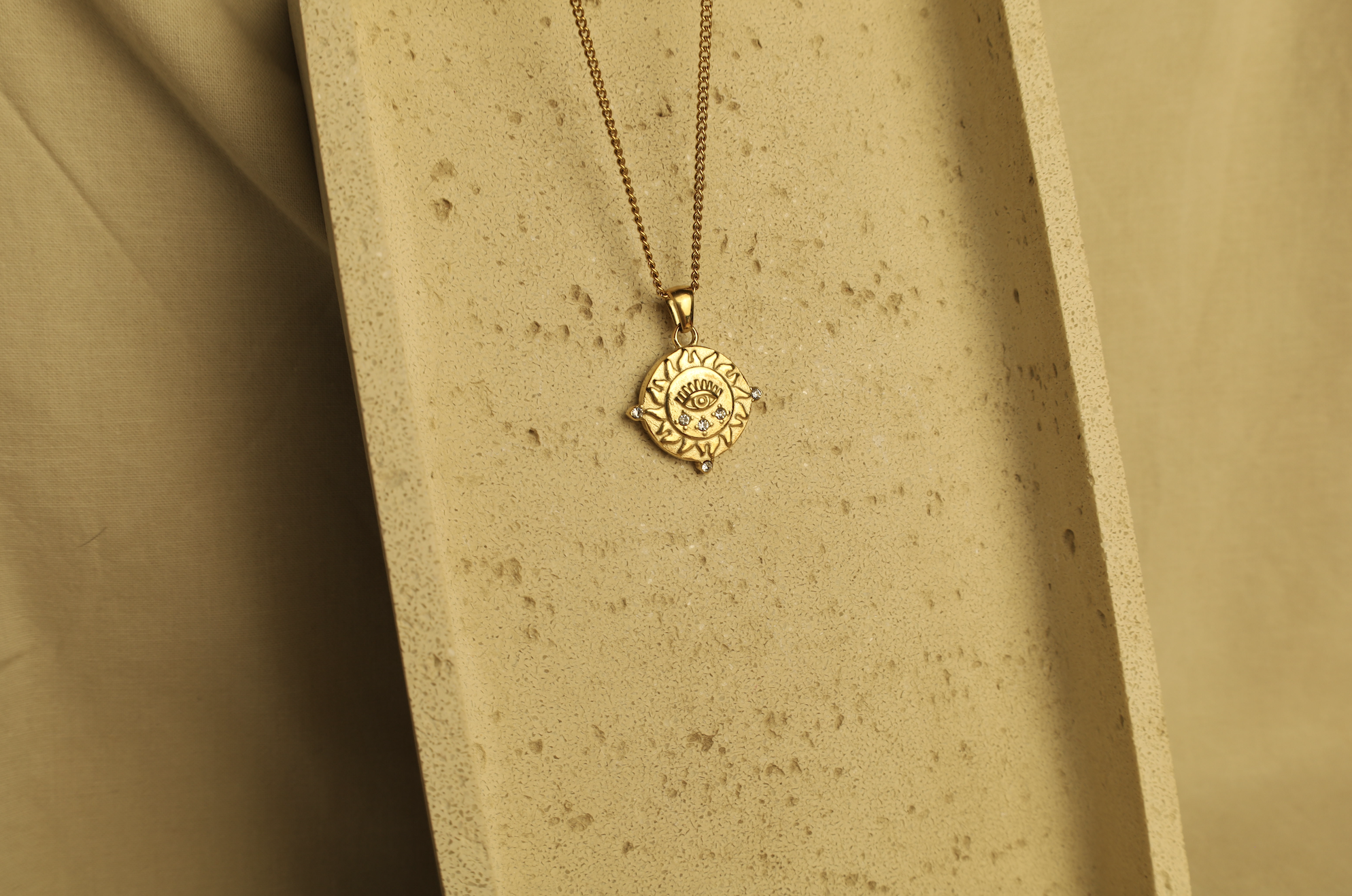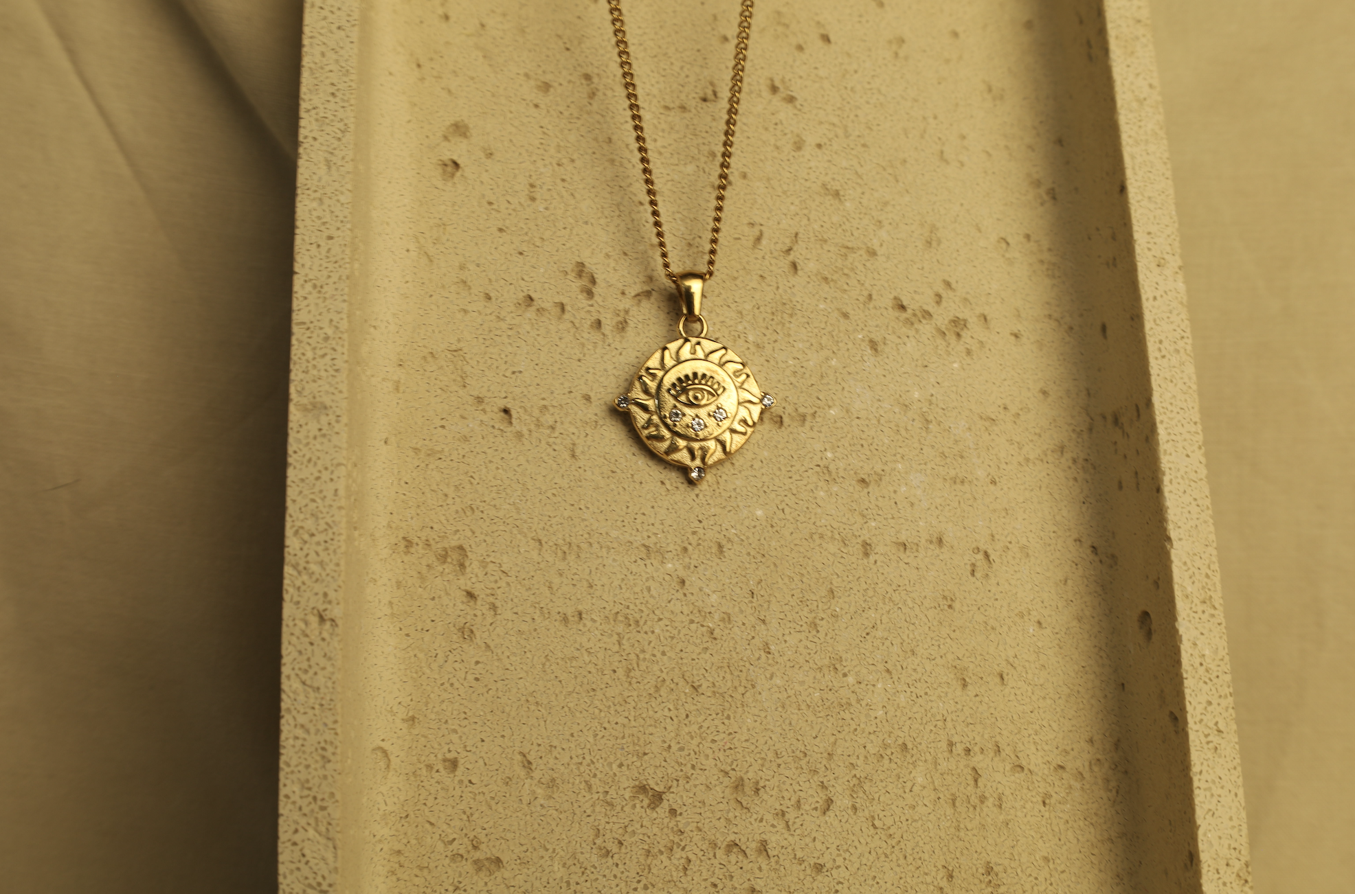 Medálos nyaklánc, kövekkel és középen a vigyázó szemmel, így praktikus is, nem csak csodaszép!