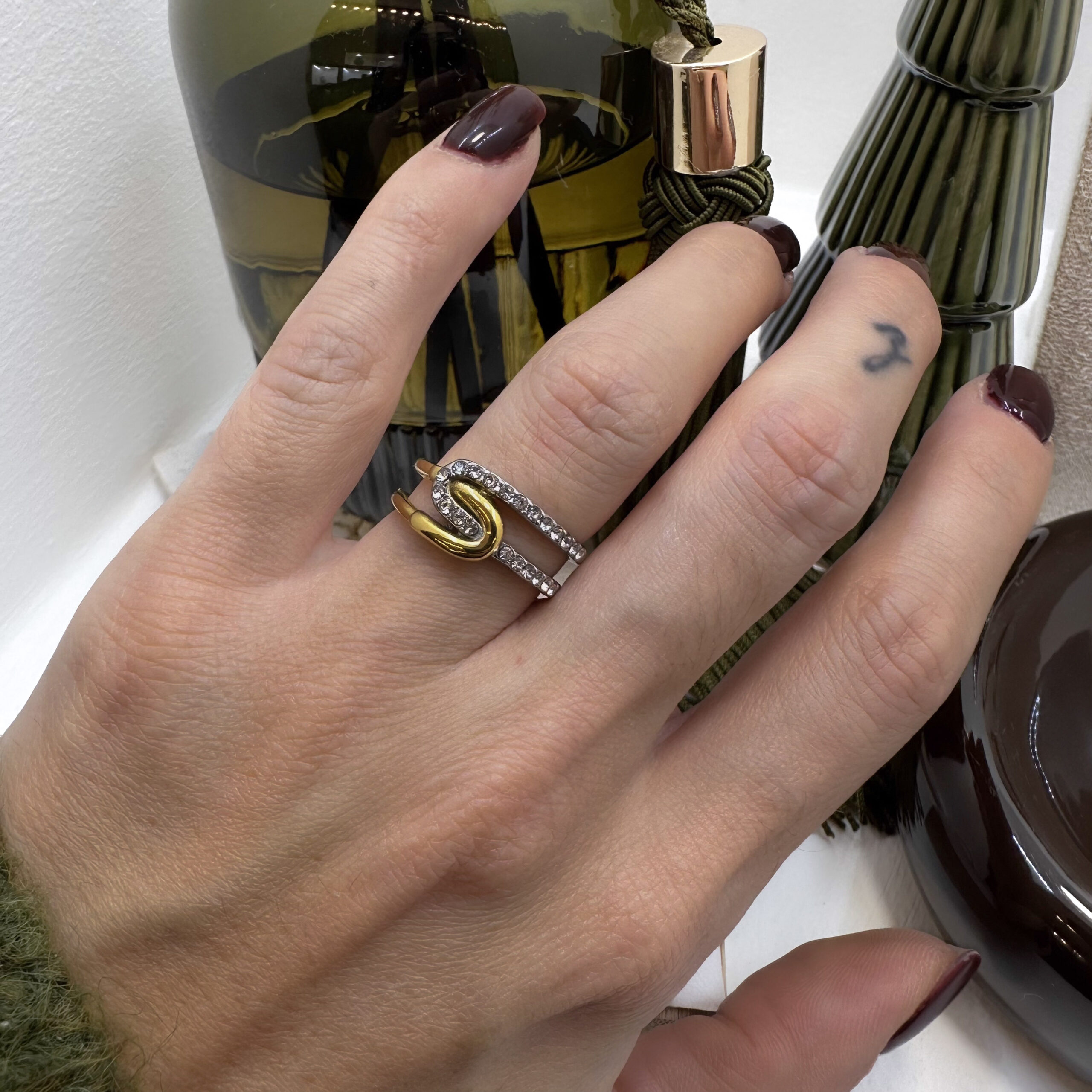 Ezüst-arany keveredése – most tényleg tarol ez a trend, főleg ebben a biztosítótűre emlékeztető formában. M-es méretnek felel meg mindegyik gyűrű!